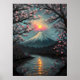 Fuji Sunset Cherry Blossom Mountain Art Poster