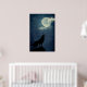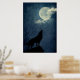 Full Blue Moon Howling Wolf Silhouette Poster
