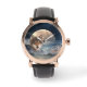 Herrenuhr mit bemalter magischer Fantasielandschaft mit Vollmond und Wolf.