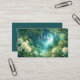 Define your brand with celestial magic and the ethereal beauty of a hidden fairytale realm using this captivating business card. The design centers on a spectacular nocturnal landscape, dominated by a massive, glowing full moon and a starry, deep blue sky. A magical castle or ancient city sits nestled on the distant cliffs, reflecting light onto the tranquil lake below. The entire scene is lavishly framed by lush creamy white and pale yellow roses and dark forest foliage, creating a secret, luminous border. Subtle fairy lights and sparkling stardust fill the air and trees, enhancing the enchanting, high-end atmosphere and making your card truly unforgettable. This business card is ideally suited for a luxury event planner specializing in fantasy or twilight-themed galas, a boutique hotelier wanting to convey a magical, serene setting, or a fantasy novelist or game developer seeking distinctive, narrative-driven branding. It would also perfectly suit a fine art print seller focused on mystical or romantic works, or an exclusive floral designer emphasizing white and luminous arrangements. The card's captivating combination of celestial imagery and abundant white florals ensures it is versatile for any sophisticated announcement, a refined gift enclosure, or an elegant invitation.