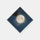 A full moon seems trapped in a basketball hoop, its netting stretched against a starry night sky, creating a surreal and captivating scene