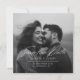 This casual chic wedding save the date card in square format, features a prominent full bleed photo and contemporary set of modern fonts in white. Included in the design is a gradient overlay over the photo for the white text to pop. Additional text area at the back is provided for further personalization.