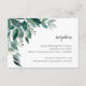 Die elegante botanische Empfang-Gehäusekarte zeichnet sich durch grüne Aquarellfarben-Eukalyptus-Blätter und Blattwerk aus, die mit schwarz-weißer Kalligraphie und Blockschrift bedruckt sind. Personalisieren Sie Ihre Hochzeitsempfangsdetails inklusive Veranstaltungstermine, Veranstaltungsort und Adresse. Entworfen, um unsere reichhaltige Foliage Einladung Kollektion zu ergänzen.