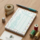 This functional and stylish notepad is designed specifically for tailors, fashion designers, and custom clothiers. It features a comprehensive chart for recording all essential body measurements, from chest and waist to specific notes on posture and asymmetry. The charming background pattern of sewing machines, mannequins, and thread spools adds a professional yet creative touch to your workspace.