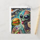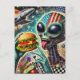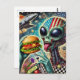 Fun Alien Eating Cheeseburger Encaustic Collage Postkarte