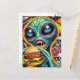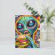 Eine Alien, die einen Cheeseburger zu einem lustigen und farbenfrohen, einzigartigen KI-Design isst