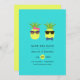 Funny Cartoon Ananas Pärchen Strand Hochzeit Save the Date Karte in trendigen Farbtönen, die auf Ihre Event-Besonderheiten angepasst werden können.