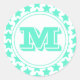 Fun Aquamarin Stars Muster & Monogramm Runder Aufkleber
