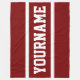 This sporty bold design features athletic white text, ready to personalize, inside bold white accent stripes against a background of deep red.