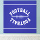 This sporty design features white mirrored athletic white FOOTBALL text in the shape of a football, centered against deep blue background with sleek top and bottom edge stripes. The colors in this design can be personalized.