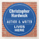 Vergnügen Gedenkstein Wand Plaque Geschenk in Form eines Glass Untersetzer für einen Autor & Schriftsteller. Blaue und weiße Plakette. Bearbeiten Sie das Design, um die Formulierung so zu ändern, dass der Empfänger des Geschenks Anzug erhält.