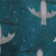 Kleine Fledermäuse, die von Ästen im Mondschein hängen, auf einem aquamarinen grünen Hintergrund. Originelle Kunst von Nic Squirrell.