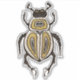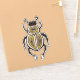 Entomologieaufkleber mit Farbabbildungen, die einen abstrakten Käfer aus Cartoon mit dekorativen Elementen in Weiß, Gold und Schwarz auf intensiv gelbem Hintergrund darstellen.