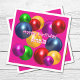 Spaß und farbenfrohe personalisierte Geburtstagsnapkins mit einem Regenbogen von schwimmenden Ballons auf einem hellrosa Hintergrund.