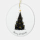 Dieser lustige Weihnachtsschmuck ist perfekt für Katzenliebhaber! Ein Weihnachtsbaum aus niedlichen schwarzen Katzen mit leuchtenden gelben Augen wird mit einem goldenen Stern überragt. Der weiße Hintergrund und das spielerische Design verleihen ihm ein typisches Retro-Ambiente, ein charmantes und modernes Ambiente und machen es zu einem großartigen Ornament für diejenigen, die eine Touch Katzenjammer Spaß genießen.