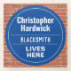 Vergnügen Gedenkstein Wandschenke in Form eines Glass-Untersetzer für einen Schmied. Blaue und weiße Plakette. Bearbeiten Sie das Design, um die Formulierung so zu ändern, dass der Empfänger des Geschenks Anzug erhält.
