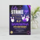 A lovely design to celebrate your little bowler! Featuring images of bowling pins and a bowling ball in bright neon and pink colors, this design is ideal for girls' birthdays of all ages. Get yours now!