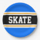 Fun Bright Blue Black Yellow SKATE Racing Streifen Pappteller