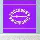 This sporty design features white mirrored bold TOUCHDOWN white text in the shape of a football centered against bright purple background with sleek white edge stripes. The colors in this design can be personalized.