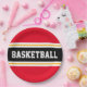 Dieses sportliche Design zeichnet sich durch fett gedruckten BASKETBALL-Text in einem breiten schwarzen, horizontalen Mitte-Rennstreifen aus, der mit zwei schwungvollen weißen Pinstreifen gegen leuchtend rote äußere Streifen hervorgehoben wurde. Der Text kann personalisiert sein.