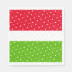 Dieses festliche Design zeichnet sich durch einen weißen, mittleren Streifen mit leuchtend rotem Oberteil und leuchtend grüne Streifen am Boden aus. Die obere und untere Streifen sind mit farbigen weißen Kachelpolka-Punkten versehen.
