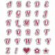 Fun burgundy Farbe Schriftart Typografie Monogramm Text Hauptstadt Buchstaben Alphabet Aufkleber Pack für Monogrammatisierung, Personalisierung, Anpassung, Notenschrift, Zeitschriften, Notizbücher, und mehr. Dieses Set beinhaltet auch einen Ausrufepunkt, Herz, Blume und Stern.