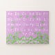Niedliche Lächelnde Schmetterlinge mit Polka-Punkten flattern über die Buchstaben auf diesem lustigen Alphabet lernen Puzzle. Farbenfrohe rosa und grüne Zickzack-Muster Basis. Text und Name können mit der bereitgestellten Vorlage personalisiert werden. Ideal für Kinder, um sich beim Zuhause zu amüsieren und zu lernen. Eine großartige Unterrichtshilfe. Originelles Design von Anura Design Studio.