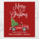 Fun Calligrafy Christmas Vintag Truck Red Weinetikett