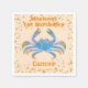 Spaß Krebs gemalt in einem impressionistischen Stil. Die Krabbe hat Beine, Pincers und Augen, vergoldet mit goldenen Nuggets-Muster. Random Gold Konfetti werden um den Text und das Bild herum angezeigt. Die Farben sind hellblau, rosa und orange. .