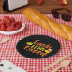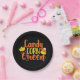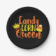 Halloween-Papierplatte - Candy Corn Queen in schwarz, orange und gelb.
