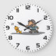 Fun Cartoon Boy and Dog Playing Fetch Große Wanduhr