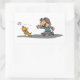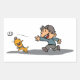 Fun Cartoon Boy and Dog Playing Fetch Rechteckiger Aufkleber
