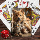 Kartenstapel mit Katze und Hund, die begierig darauf sind zu spielen. Lieblich für jeden, der Tiere Liebe.