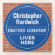Vergnügen Gedenkstein Wandschenke in Form eines Glass-Untersetzer für einen gecharterten Buchhalter. Blaue und weiße Plakette. Bearbeiten Sie das Design, um die Formulierung so zu ändern, dass der Empfänger des Geschenks Anzug erhält.
