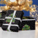 Farbenfrohe Weihnachtsbaumkunst auf einem schwarzen Hintergrund.