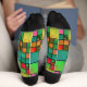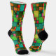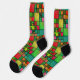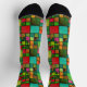 Künstlerische Socken mit einem lustigen abstrakten geometrischen Muster in Grün und Rot, inspiriert durch bleihaltige Glasfenster. Sie können das Muster skalieren, ziehen und drehen, wenn Sie wollen. Schön zu Weihnachten.