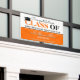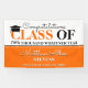 Ein lustiges Schild mit den Glückwünschen zum Absolvent in einer farbenfrohen Kombination aus Schwarz, Weiß und Orange