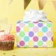 Ein lustiges Muster von bunten Polka Punkte auf einem weißen Hintergrund.