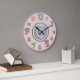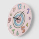 Funky Zahlen und coole Pastellfarben machen diese Uhr zum perfekten Kinderzimmer. Klicken Sie auf Anpassen, um die Hintergrundfarbe von Rosa auf etwas Anderes zu ändern.
