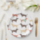 Das gemusterte Design ist perfekt für jeden, der Hunde und Weiner Hunde , und weist grillfarbene Korallenrosa, aquamarine Blau-, Minze-, Gelb-, Creme- und Brauntöne auf. Hunde tragen Halsbänder und Pullover mit Damast.