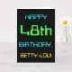 Dieses einfache und lustige Geburtstagskarten-Design enthält eine Nachricht wie "HAPPY 48. BIRTHDAY, BETTY-LOU!". Es bietet auch ein lustiges Aussehen, das durch das digitale Computing inspiriert wird. Der Name auf der Vorderseite und die Meldung auf der Innenseite können personalisiert sein. Es könnte an jemanden geschickt oder gegeben werden, der seinen achtundvierzigsten Geburtstag feiert und der vielleicht als Datenbankadministrator, Computerprogrammierer, Netzwerkadministrator, Softwareentwickler, Elektroingenieur arbeitet oder anderweitig gerne Computer benutzt. [~Z0000100]
