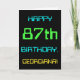 Dieses einfache und lustige Geburtstagskarten-Design enthält eine Nachricht wie "GLÜCKLICH 87. BIRTHTAG, GEORGIANA!". Es bietet auch ein lustiges Aussehen durch digitale Computer. Der Name auf der Vorderseite und die Meldung auf der Innenseite können personalisiert sein. Es könnte an jemanden geschickt oder gegeben werden, der seinen siebzigsten Geburtstag feiert und der vielleicht als Datenbankadministrator, Computerprogrammierer, Netzwerkadministrator, Software-Entwickler, Elektroingenieur arbeitet (oder vor dem Ruhestand gearbeitet hat) oder der sonst gerne Computer benutzt. [~Z0000100]