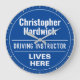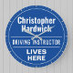 Spaß Gedenkstylus Wandschenke in Form einer Wandschloss für einen Fahrlehrer. Blaue und weiße Plakette. Bearbeiten Sie das Design, um die Formulierung so zu ändern, dass der Empfänger des Geschenks Anzug erhält.