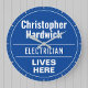 Vergnügen Sie sich mit einem Geschenk an der Wand in Form einer Wall-Uhr für einen Elektrer. Blaue und weiße Plakette. Bearbeiten Sie das Design, um die Formulierung so zu ändern, dass der Empfänger des Geschenks Anzug erhält.