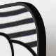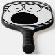 Pickleball Paddel mit Bild von Vektorgesichtern vor einem schwarz-weiß gestreiften Hintergrund.