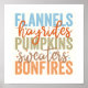 Dieses dynamische und strukturierte Herbstdesign hebt die wesentlichen Elemente der Herbstsaison mit den Worten "Flannels", "Hayrides", "Pumpkins", "Sweaters" und "Bonfire" hervor. Jedes Wort wird in fett gedruckten Großbuchstaben mit einer verwitterten Textur angezeigt, die dem Design ein rustikales, Vintages Gefühl verleiht. Die Farbpalette umfasst coole Blues, warme Orangen, erdige Grüntöne und weiche Braun, die die verschiedenen Farbtöne des Herbstes einfangen. Die Wörter "Hyrides" und "Sweaters" sind in einem fließenden, kursiven Drehbuch geschrieben, das wunderbar mit dem Blocktext kontrastiert und dem Design eine Touch von Eleganz und Bewegung hinzufügt. Kleine Sterne-Akzente sind um den Text verstreut und verleihen dem Text einen zusätzlichen Charme und Spielfreude.