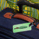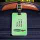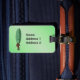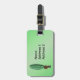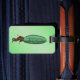 Dieses individuelle Gepäckanhänger für Ihre Koffer ist hellgrün mit einem lustigen Fantasiemann in einem braunen Anzug mit einem großen grünen Haufen für einen Kopf mit einem albernen Gesichtsausdruck. Passen Sie Ihren Namen und Ihre Adresse mit der Vorlage an.