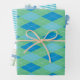 Diese farbenfrohen geometrischen Muster verfügen über einen Streifen, eine Raute und karierte Farbtöne in Blau und Grün. Ideal für eine Geburtstagsfeier oder Kinderdusche.