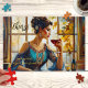 Ein buntes Bild einer Dame, die ein Glas Rotwein trinkt. Schön für jeden Weinliebhaber.