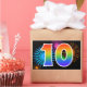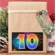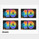 Dieses lustige, lebendige Aufkleber-Design zeichnet sich durch ein farbenfrohes, von feierlichen Feuerwerken inspiriertes Muster aus, zusammen mit der Zahl "10" mit einem bunten, von Regenbogen inspirierten Farbverlaufsmuster auf schwarzem Hintergrund. Aufkleber wie diese könnten vielleicht als kleines Geschenk gegeben werden, während man den zehnten Geburtstag von jemandem feiert, oder vielleicht zum zehnten Hochzeitstag eines Paares, oder ein anderes zehntes Ereignis. [~Z0000324]
